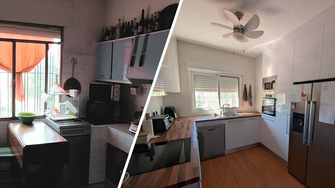 Una cocina con distribución limitada, instalaciones desactualizadas y un uso poco práctico en el día a día.